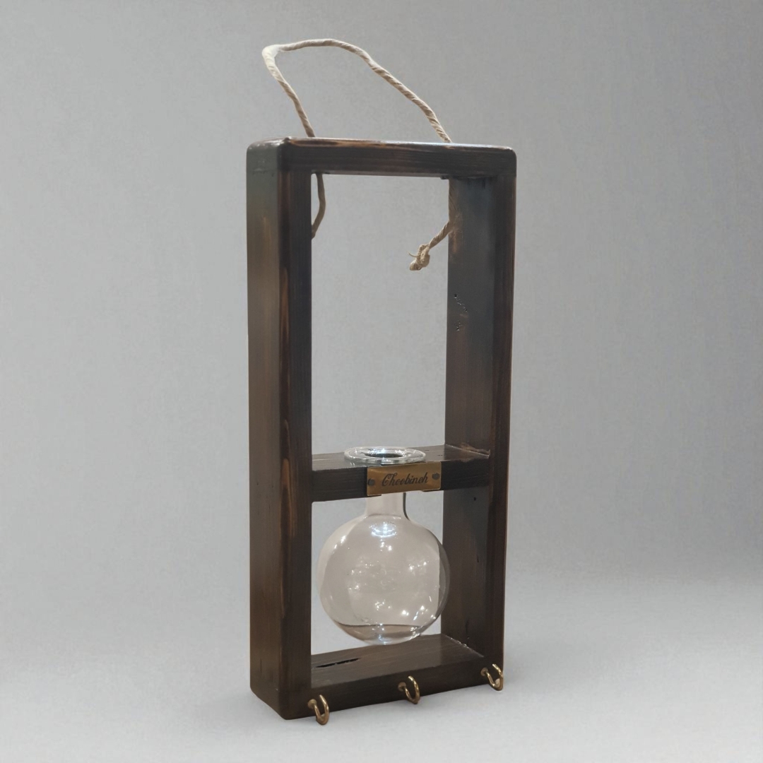 گلدان و جاکلیدی دستساز | ترکیب چوب روس و شیشه پیرکس