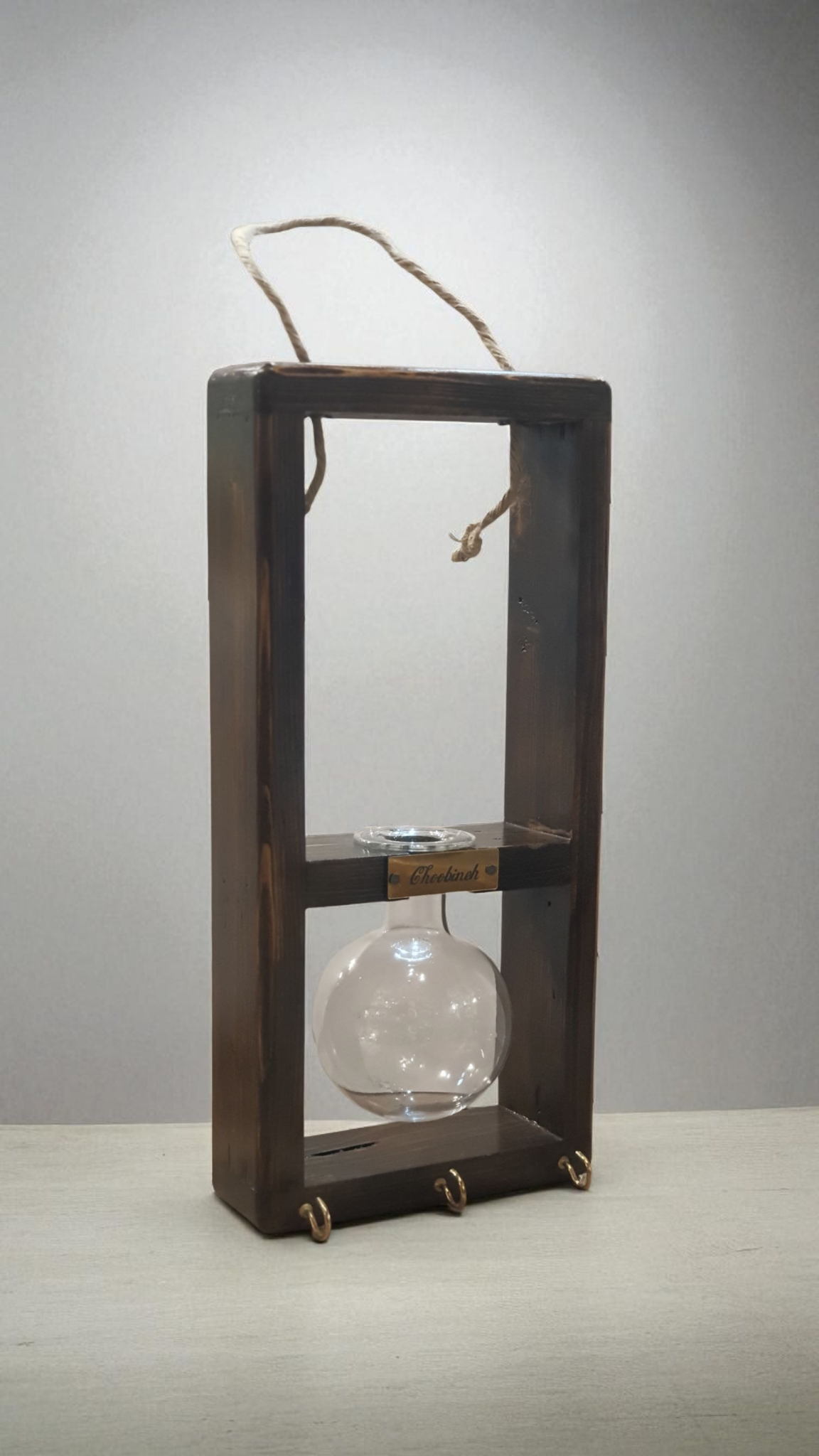 گلدان و جاکلیدی دستساز | ترکیب چوب روس و شیشه پیرکس با یک تیر، دو نشان! این محصول خاص و کاربردی با طراحی مینیمال، ترکیبی است از زیبایی و کارایی. هم یک گلدان شیشهای برای نگهداری گیاهان آبدوست مانند پتوس، و هم یک جا کلیدی چوبی با ۳ قلاب فلزی برای نظم دادن به کلیدها و وسایل کوچک. مشخصات فنی: جنس چوب: چوب روس مرغوب با رنگ تیره و بافت طبیعی جنس گلدان: شیشه پیرکس مقاوم و شفاف ارتفاع: ۲۳ سانتیمتر عرض: ۱۴ سانتیمتر تعداد قلاب: ۳ عدد فلزی با مقاومت بالا ویژگیهای منحصربهفرد: ✅ طراحی دستساز و خاص ✅ مناسب برای دکور ورودی خانه، اتاق کار یا نشیمن ✅ انتخابی عالی برای هدیه دادن به افراد خوشسلیقه ✅ قابل استفاده بهعنوان گلدان گیاهان آبدوست مانند پتوس ✅ دارای قلابهایی برای نگهداری کلید، بند ماسک، آویزهای کوچک و … بستهبندی و ارسال: این محصول با بستهبندی ایمن برای شما ارسال میشود تا سالم و زیبا به دستتان برسد. تولید شده با دستان هنرمندان ایرانی، با احترام به سلیقه و زیباییشناسی شما.