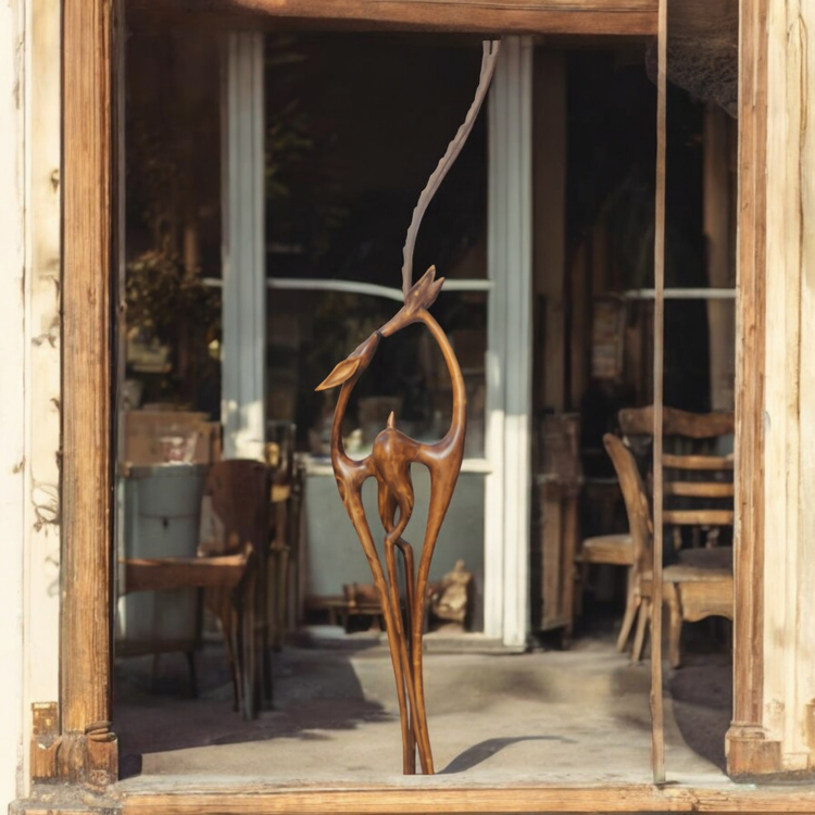 اگر بهدنبال یک اثر هنری خاص، مدرن و چشمنواز برای فضای داخلی خود هستید، این مجسمهی غزال چوبی انتخابی ایدهآل برای شماست. تلفیقی از زیبایی طبیعی چوب و طراحی هنری، این مجسمه با فرم کشیده و ظریف خود، حس آرامش، ظرافت و وقار را به محیط القا میکند.