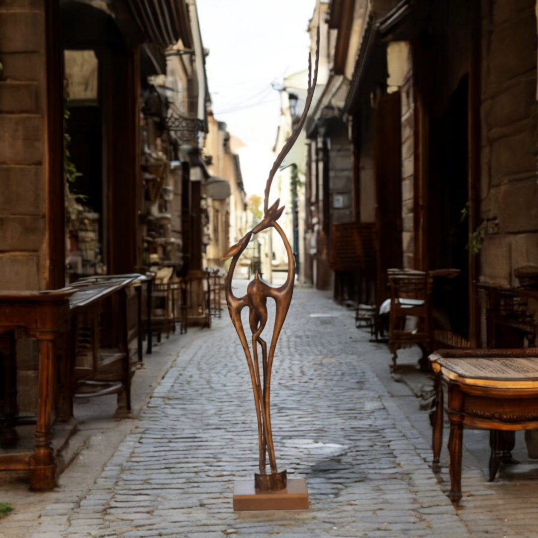 این مجسمه دکوری مناسب فضاهایی مانند سالن پذیرایی، لابی هتلها و گالریها، دفاتر خاص یا فضاهای مینیمال مدرن است. ترکیب زیبای آن با نورپردازی نقطهای، جلوهای هنری و خیرهکننده به محیط میبخشد.