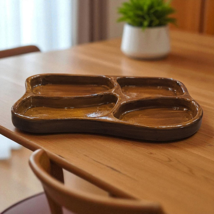 ظرف دارای چهار خانهی مجزا است تا بتوانید انواع خوراکیها مثل ترشی، زیتون، آجیل، سس یا دسر را با نظم و زیبایی سرو کنید.