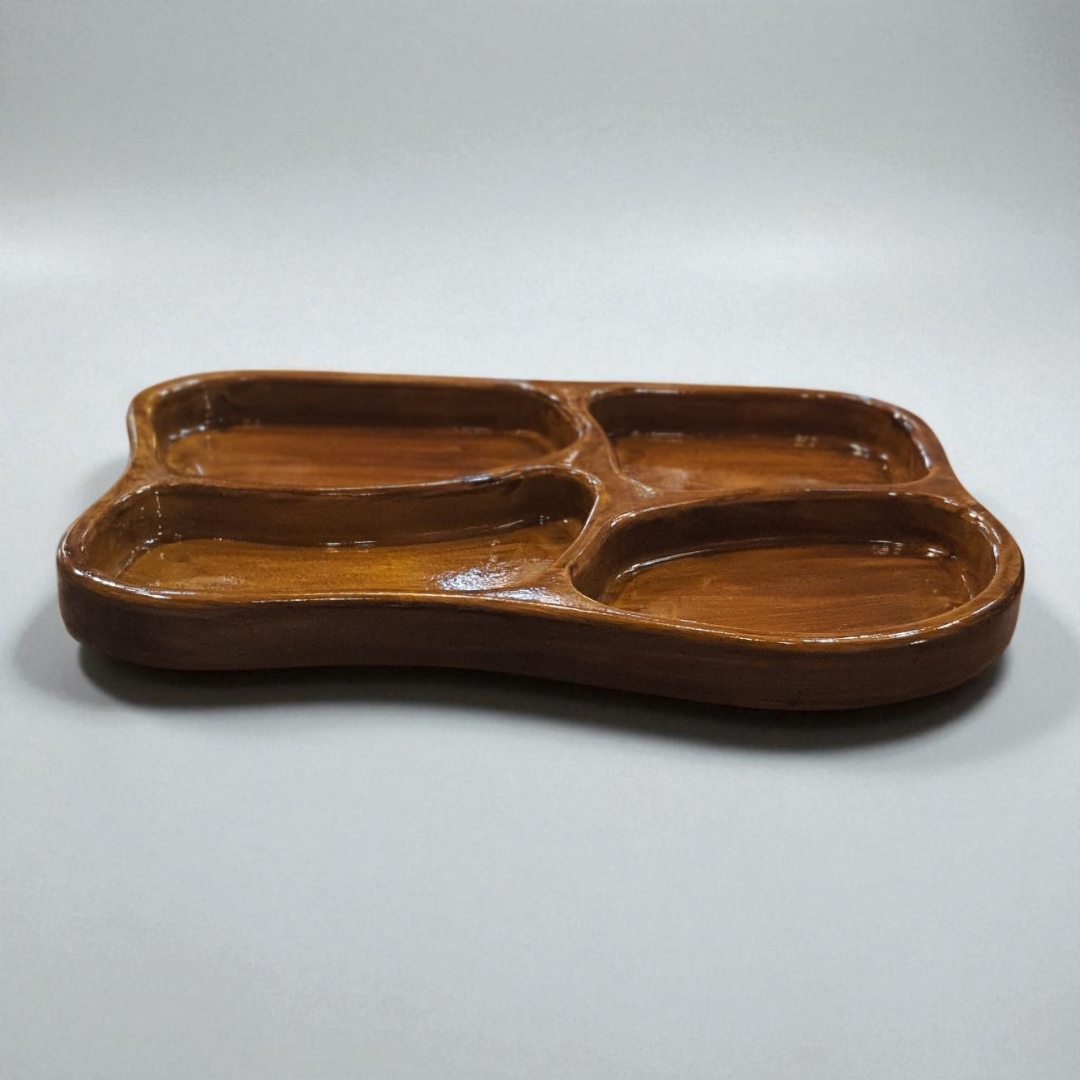 ظرف دارای چهار خانهی مجزا است تا بتوانید انواع خوراکیها مثل ترشی، زیتون، آجیل، سس یا دسر را با نظم و زیبایی سرو کنید.