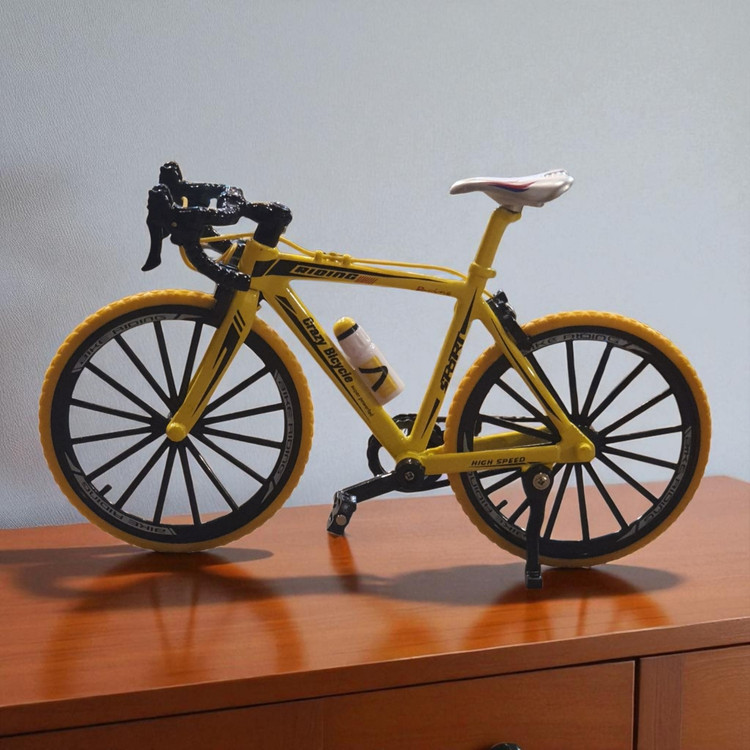 دوچرخه کورسی رومیزی دکوری رنگ زرد