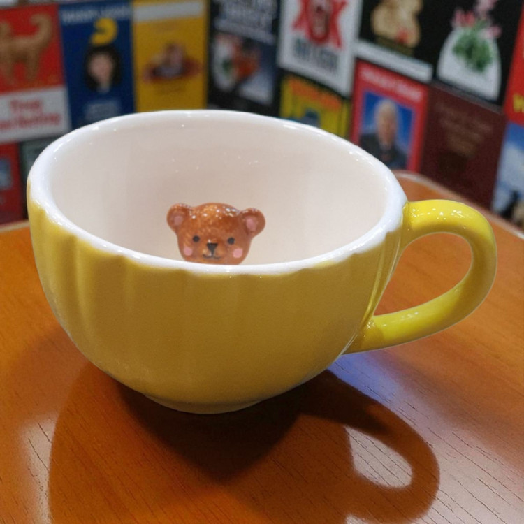 فنجان سرامیکی زرد با خرس قهوهای 🐻☕