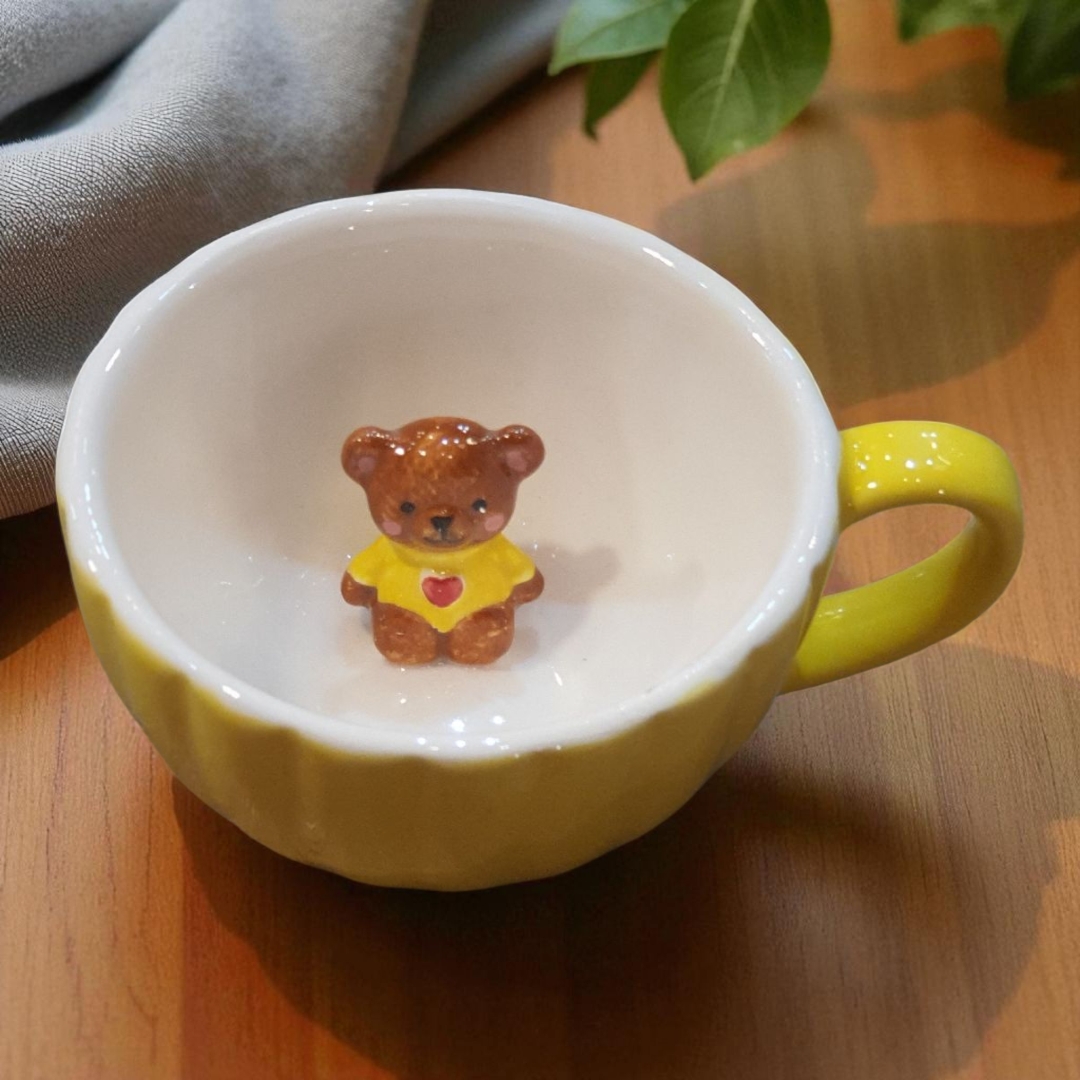 فنجان سرامیکی زرد با خرس قهوهای 🐻☕