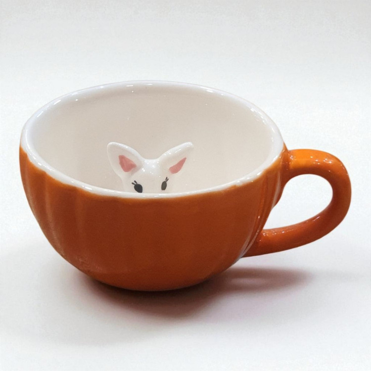 فنجان سرامیکی نارنجی با خرگوش سفید 🐰☕