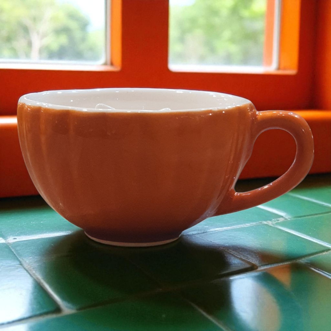 فنجان سرامیکی نارنجی با خرگوش سفید 🐰☕