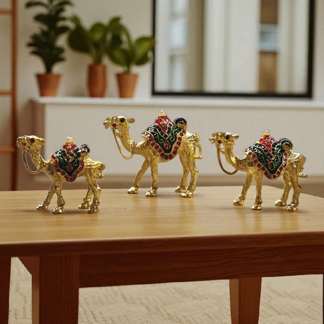 مجموعه سهتایی مجسمه شتر نگینکاری شده با جا جواهری مخفی