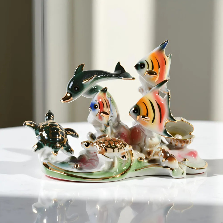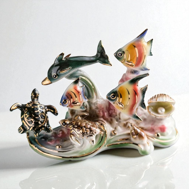 مجسمه دریایی دست ساز طرح دلفین ماهی و لاک پشت