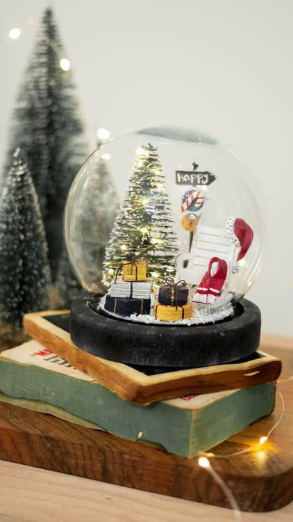 گوی شیشه ای ریسه دار درخت کاج با صندلی بابانوئل