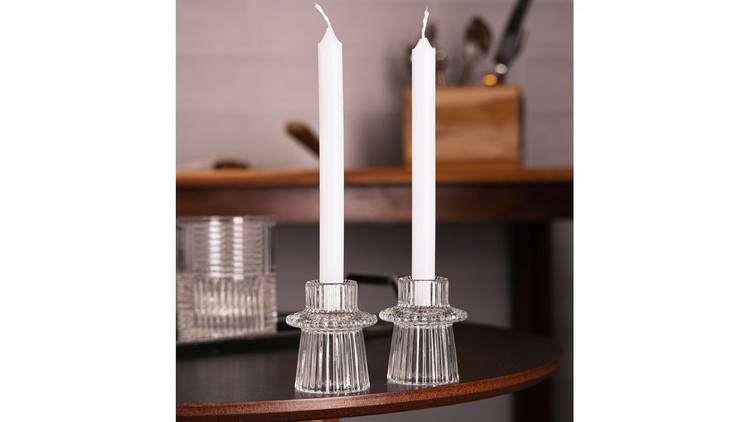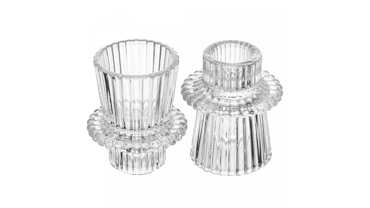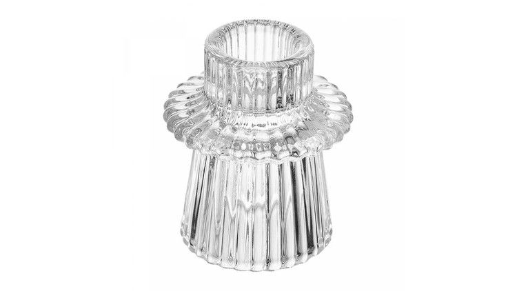 شمعدان شیشه ای شفاف شیار دار طراحی دو طرفه