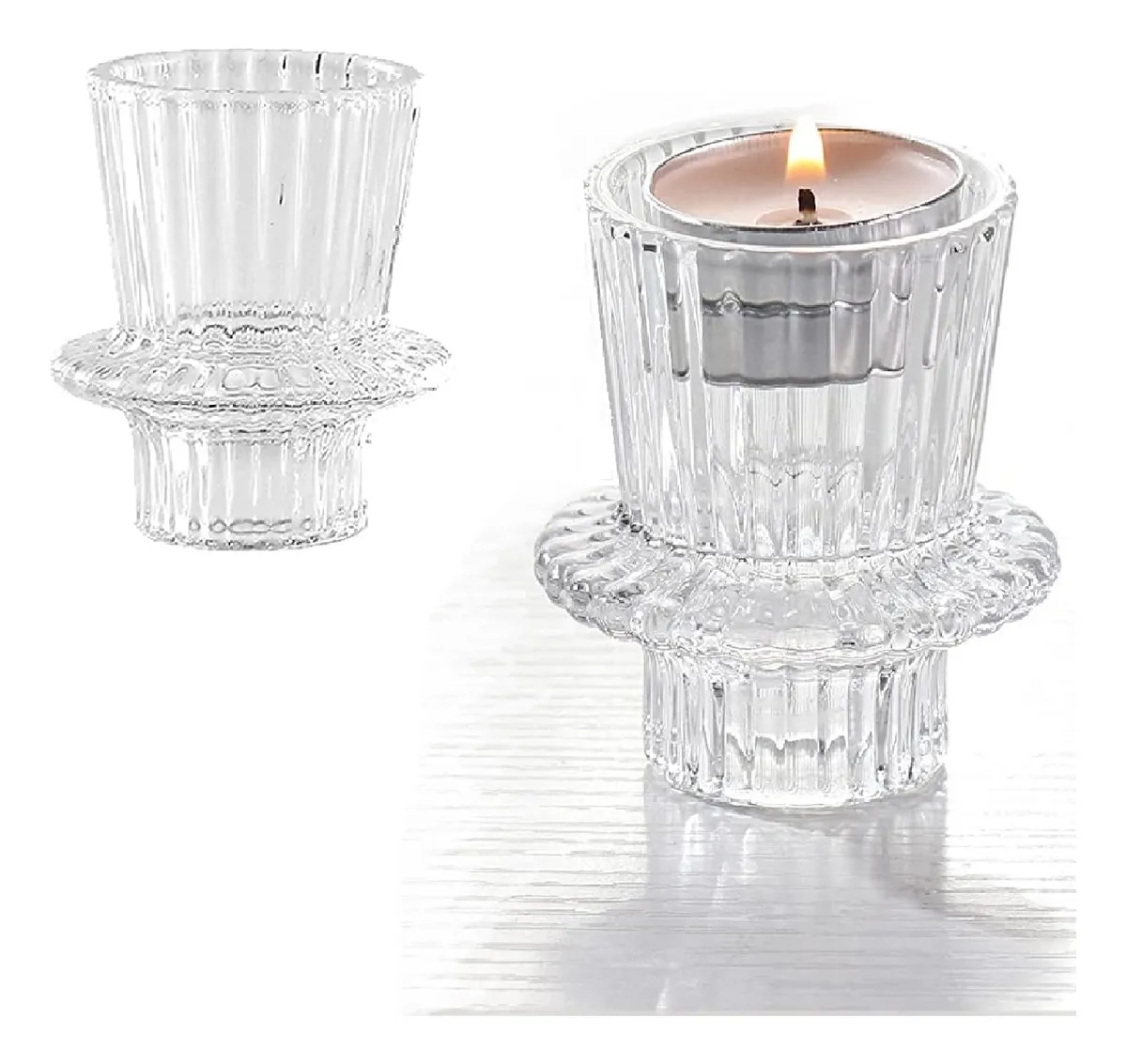 شمعدان شیشه ای شفاف شیار دار طراحی دو طرفه