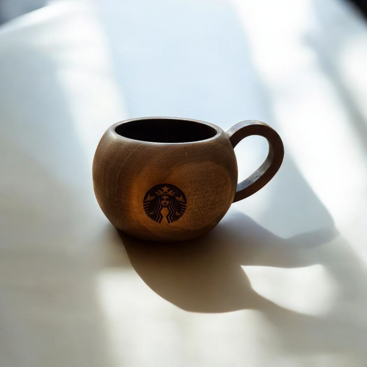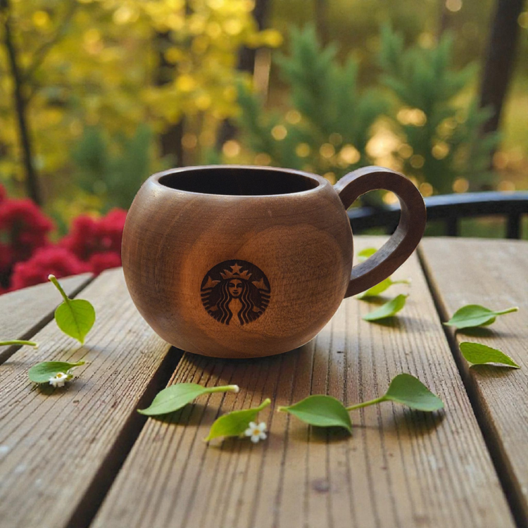 فنجان چوبی دسته دار طرح استارباکس