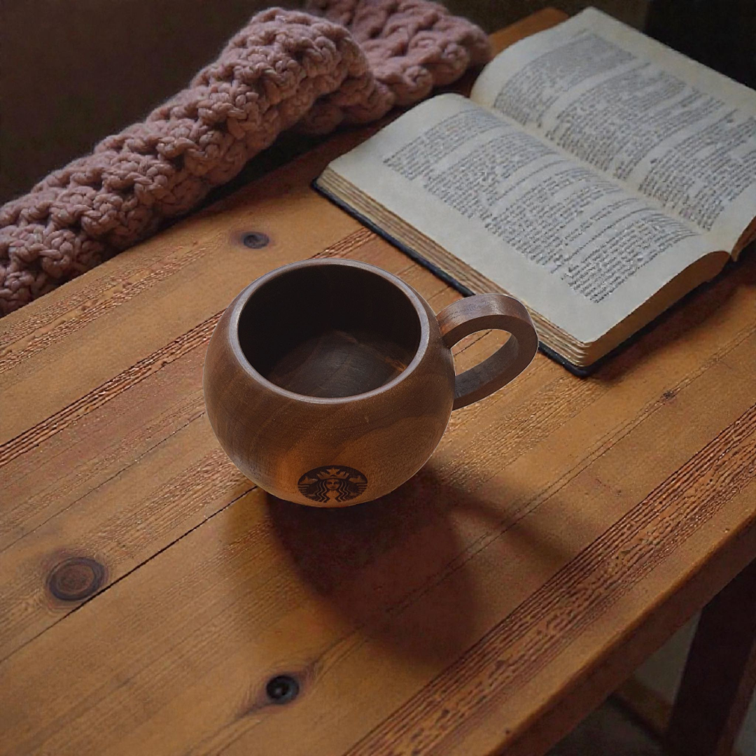 فنجان چوبی دسته دار طرح استارباکس