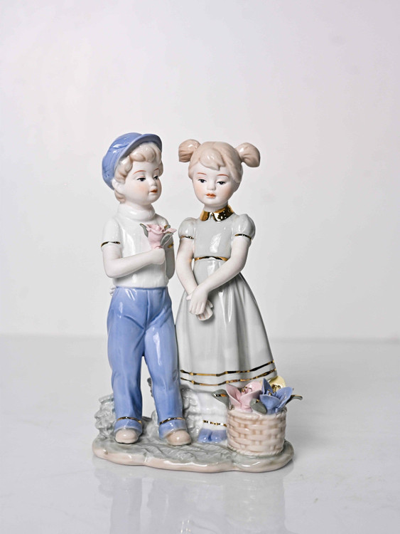 مجسمه چینی زوج عاشق نوجوان با گل
