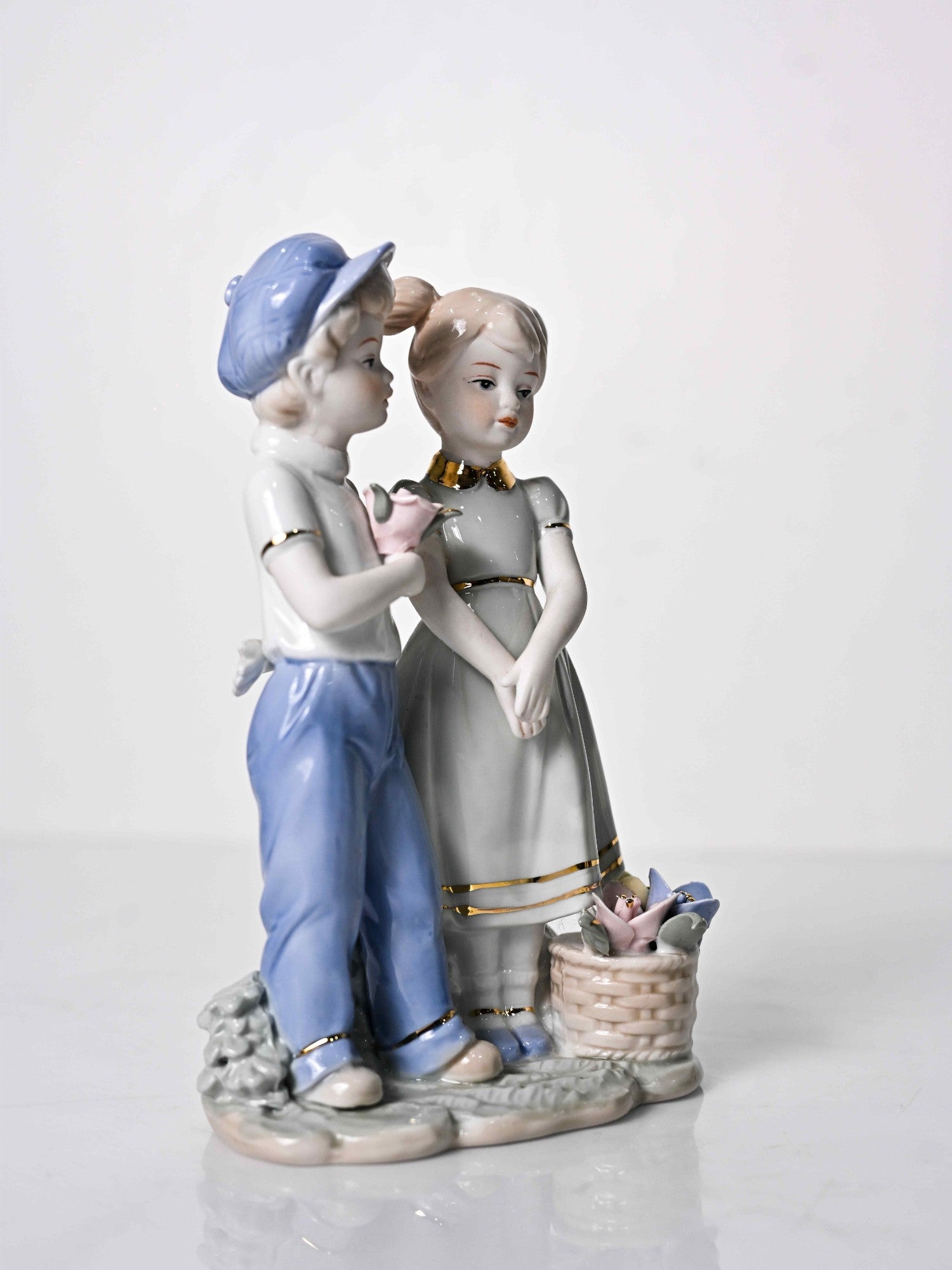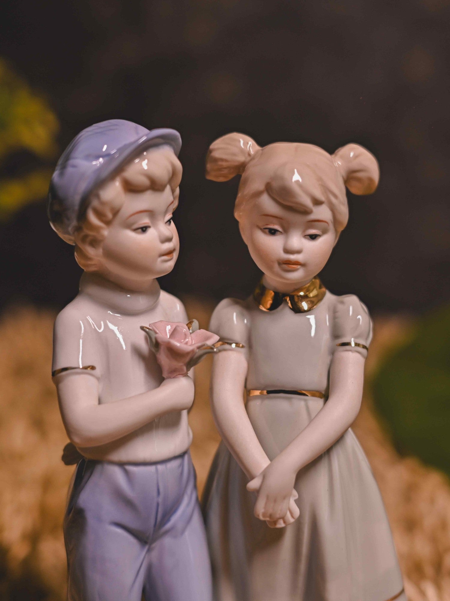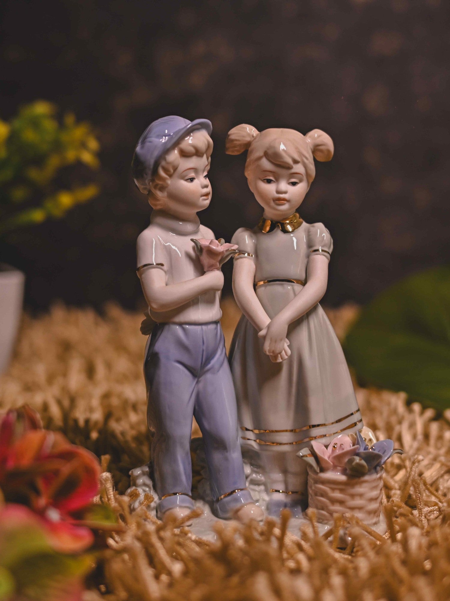 مجسمه چینی زوج عاشق نوجوان با گل