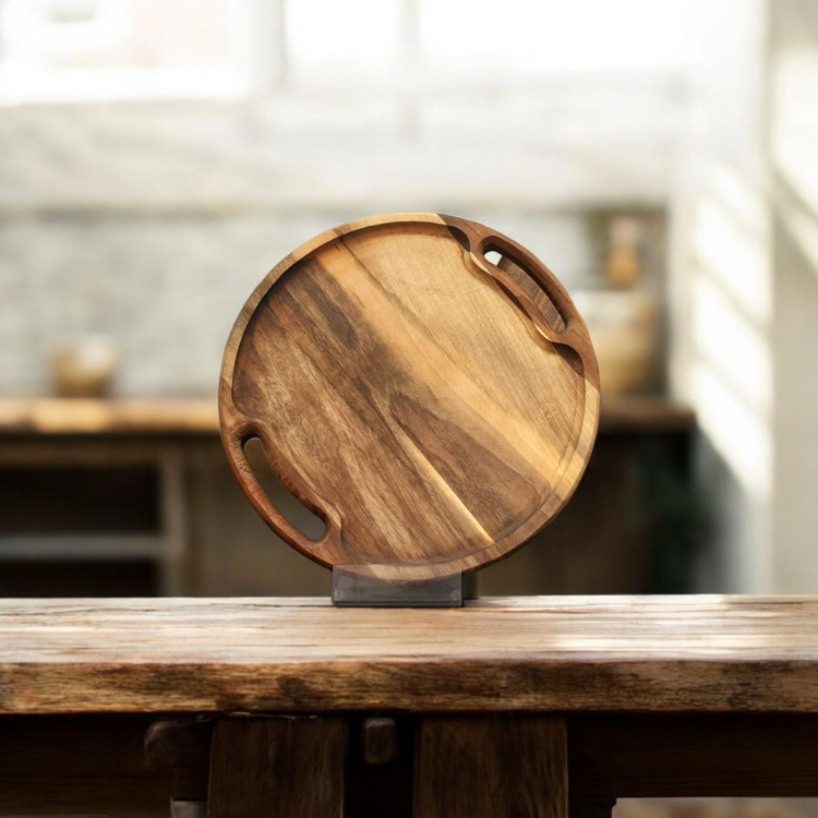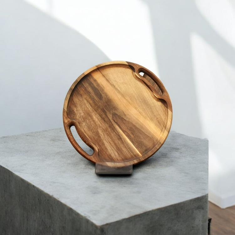 سینی گرد چوبی دسته دار چوب گردو طبیعی