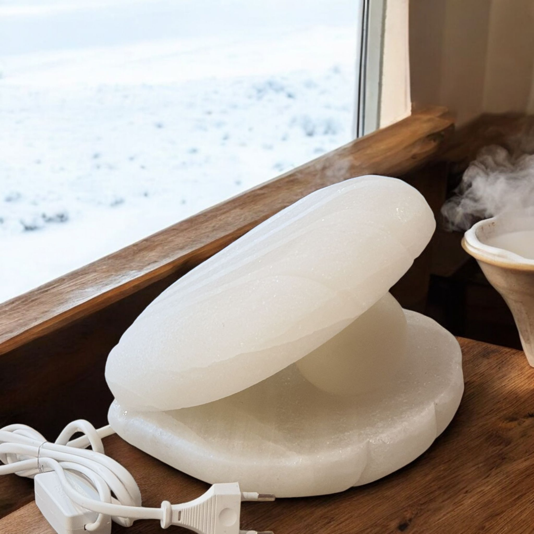 شبخواب سنگ نمک طرح صدف سایز کوچک، یکی از زیباترین محصولات دکوری و آرامشبخش ساختهشده از سنگ نمک طبیعی است. این مدل از سه قطعه سنگ نمک تشکیل شده؛ دو قطعه به شکل صدف تراش خوردهاند و در میان آنها یک گوی درخشان با قطر حدود ۵ سانتیمتر قرار گرفته است. طراحی متقارن و خوشفرم این مدل باعث میشود نور بهصورت یکنواخت و چشمنواز در محیط پخش شود.