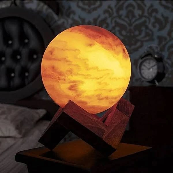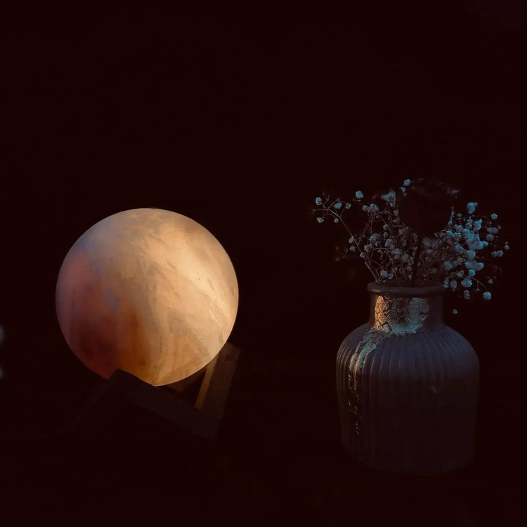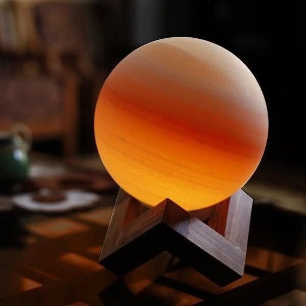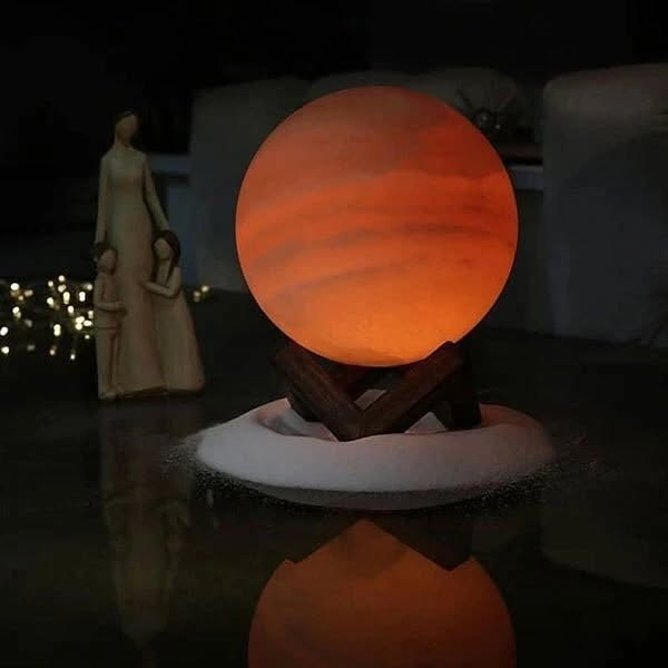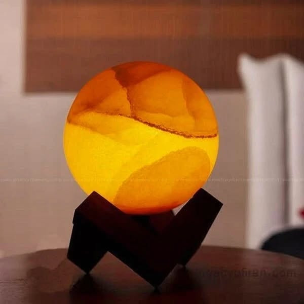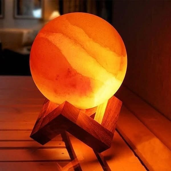 با روشن شدن چراغ داخل این گوی نمکی، نور گرم و نارنجی زیبایی به اتاق میتابد و جوی آرام و دنج ایجاد میکند.