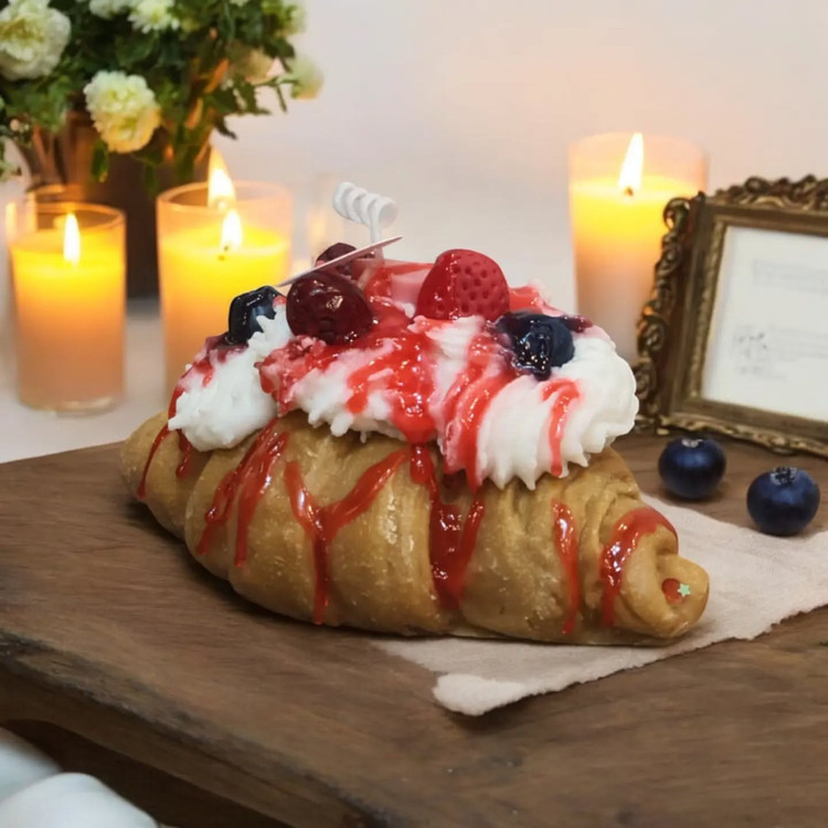 شمع کروسان خوشرنگ با خامه و توت فرنگی و تمشک و شاه توت