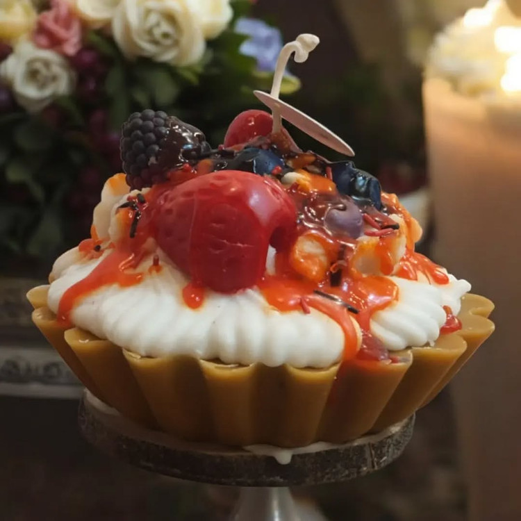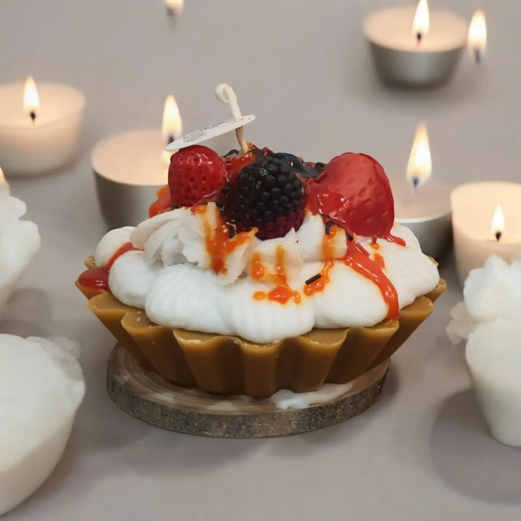 شمع تارت میوهای با توت فرنگی و شاه توت و تمشک