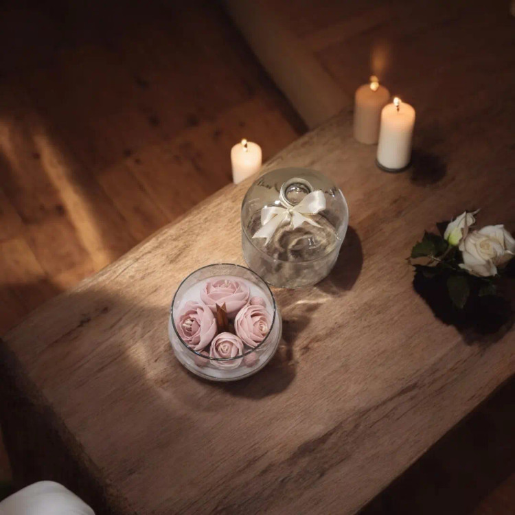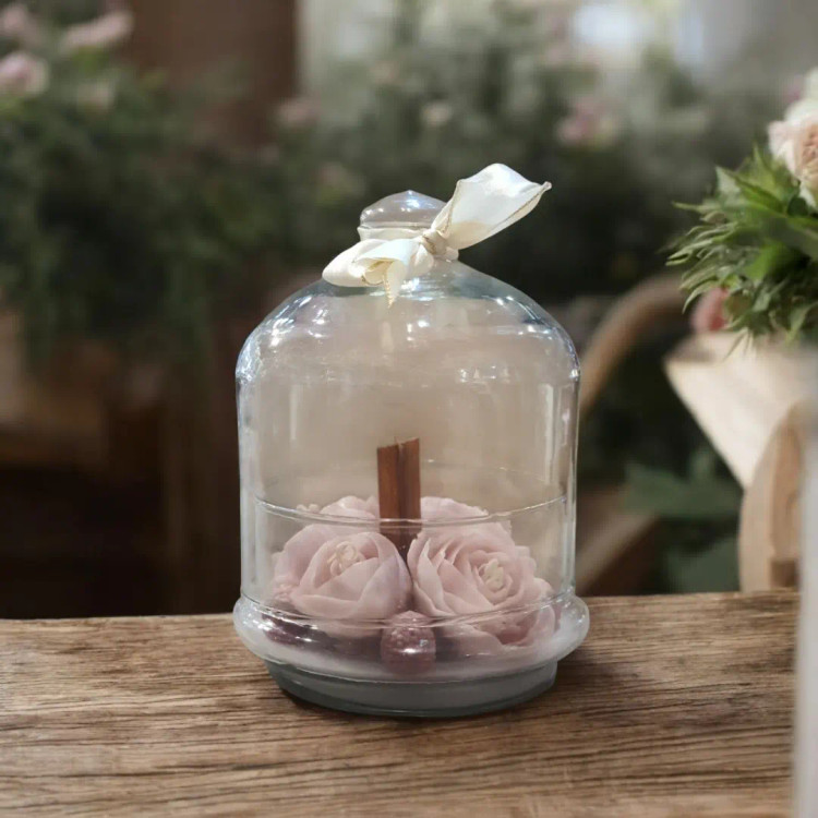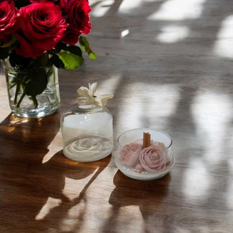 شمع گل رز در ظرف شیشه ای