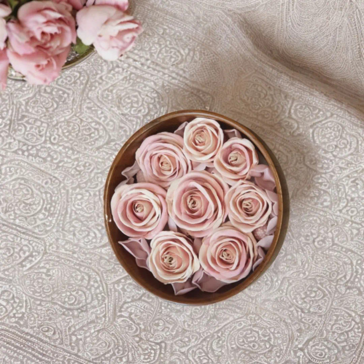 این شمع کاسهای گل رز صورتی درست مثل یه تیکه از بهشته که تو دستات جا شده! توی یه کاسه چوبی خوشرنگ و طبیعی از جنس چوب توت با قطر ۱۴.۵ سانت، هشت تا گل رز خوشگل و صورتی لم دادن و انگار دارن با هم پچپچ میکنن. همه چی این شمع از ظرافتش تا بوی ملایمش یه حس خوب و لطیف میده؛ از اون حسایی که انگار دلت میخواد همین الان یه موزیک عاشقونه بذاری و غرق رویا بشی . مهمونا ببیننش قطعاً میپرسن "این واقعاً شمعه؟ چطور انقدر خوشگله؟!" بذار روشنش کنی و ببینی چجوری فضای خونهات گرم و دلنشین میشه. اصلاً چه هدیهای قشنگتر از این برای کسی که دوسش داری؟ هم بوی خوب داره، هم ظاهر هنری و شیک، هم یه عالمه حس مثبت. میخوای این زیبایی رو داشته باشی یا به کسی که برات عزیزه هدیه بدی؟ خیلی سادهست! میتونی از طریق سایت ما سفارش بدی و این شمع خاص رو توی لحظههای قشنگت جا بدی!