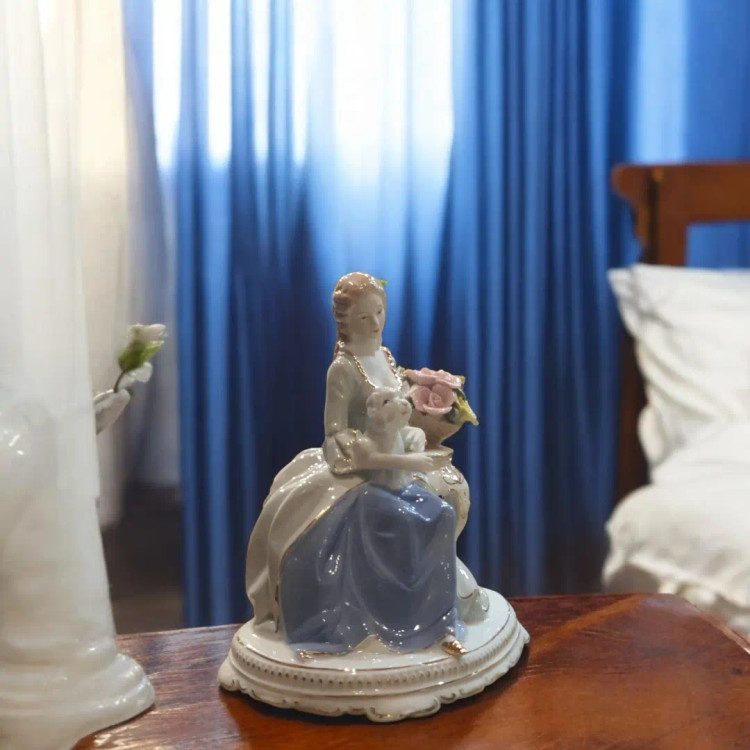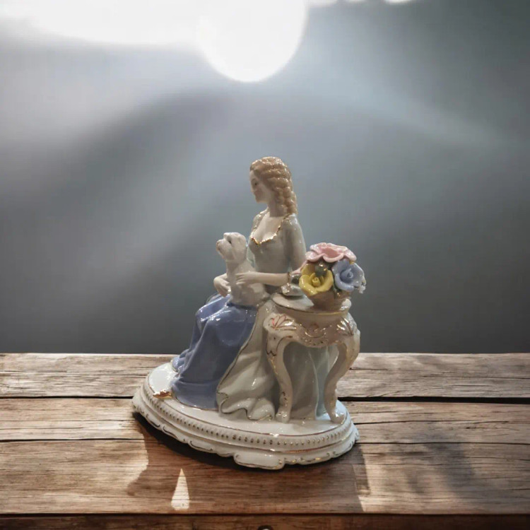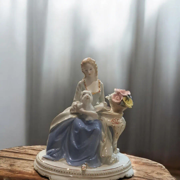 تصور کن یه خانم فرانسوی با استایل شیک نشسته، یه سگ کوچولو روی پاش لم داده و یه میز کنارش هست که روش یه گلدون با گلهای رنگی چشمک میزنه! حالا این صحنه رو بیار توی خونهات، اما نه توی واقعیت، بلکه توی یه مجسمه چینی خوشساخت با ارتفاع عرض ۲۰ سانت که حسابی دکور خونهات رو خاص میکنه. این مجسمه یه vibe اروپایی داره، انگار یه خانم اشرافزاده توی باغ قصرش نشسته و سگش داره بهش نگاه میکنه که کی نوازشش کنه! اون گلدون رنگارنگ روی میز هم حس زنده بودن و لطافت رو به کل فضا میده. خلاصه، یه تیکه از هنر فرانسوی که توی چین ساخته شده و حالا قراره بیاد توی خونه تو! اگه دلت میخواد یه اثر هنری متفاوت داشته باشی که هرکی ببینه لبخند بزنه و بگه "اینو از کجا آوردی؟"، همین الان سفارش بده!