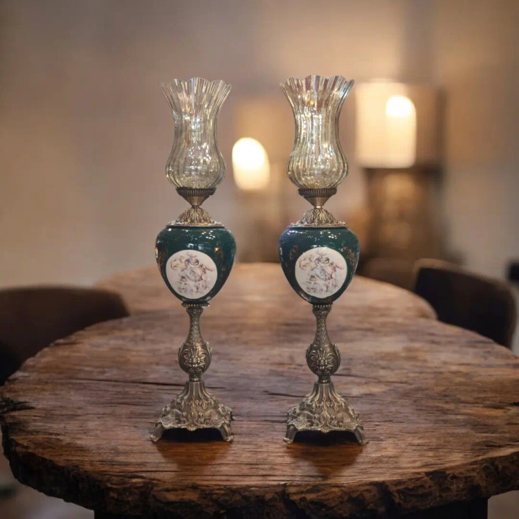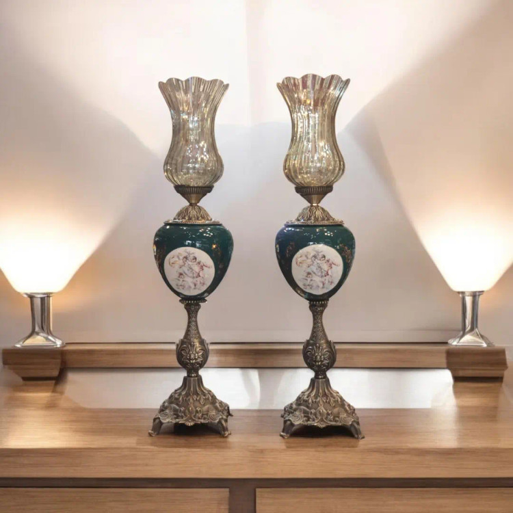 یک جفت شمعدان که کلاس و اصالتو با هم داره! اگه دلت میخواد خونت یه حس و حال اشرافی بگیره، این شمعدانهای جفتی دقیقاً همون چیزین که دنبالش بودی! با ۶۹ سانت قد و ۱۶ سانت عرض، نه اونقدر کوچیکن که به چشم نیان، نه اونقدر بزرگ که تو خونه جا نشن؛ یه اندازهی شاهانه دارن! پایهی چینی سبز خوش رنگشون با تصویر دوتا فرشته، حسوحال قدیمی و با اصالتی به فضا میده. از طرفی، فلزکاریهای باکیفیتشون خیال آدمو راحت میکنه که سالها میدرخشن و هیچوقت سیاه نمیشن. تازه، حباب بلوریشون هم نور شمع رو طوری پخش میکنه که انگار تو یه کاخ قدیمی نشستی! یه انتخاب عالی برای دکور خونت یا هدیهای شیک و موندگار.